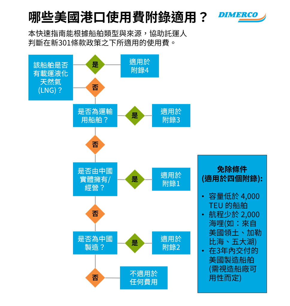 10月14日起,凡是停靠美國港口的中國製造、擁有或經營船舶,將被徵收新港口使用費。貨運公司已以將中國船舶調往其他航線,以及以非中國籍船舶作為替代方案作出回應。