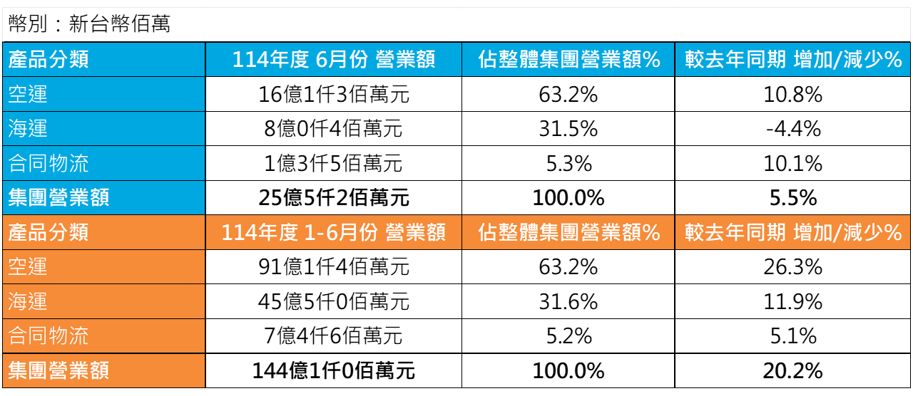 中菲行國際物流股份有限公司(5609)114 年 6 月份自結集團營業額新台幣(以下相同)25 億 5 仟 2 佰萬元,較去年同期成長 5.5%,由於台幣兌換美金大幅升值,平均匯率由去年同期的 32.37 元升值到今年 6 月的 29.62 元,大幅增加了 8.5%,因此雖然 6 月份空運貨運量較去年同期成長三成,海運貨運量成長近一成,但是受到匯率換算影響,營業額的成長因而受到影響。同時相較於上個月的營業額,雖然台幣兌換美金平均匯率升值增加 2.2%,影響了營業額的成長,但是 6 月份營業額仍較上個月增加 9.5%。累計1月至6月集團營業額則為 144 億 1 仟萬元,較去年同期成長 20.2%。
