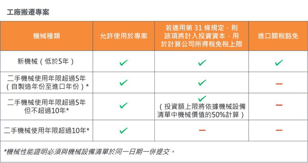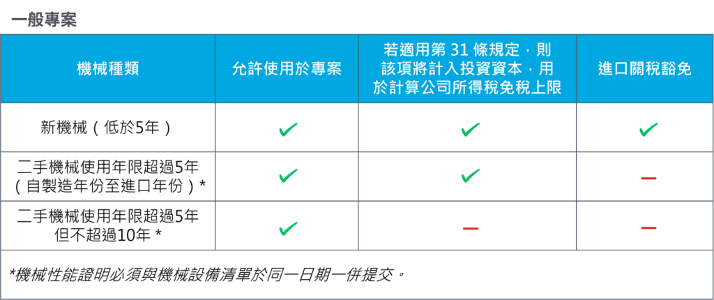 適用於在提交BOI申請後,尚未獲得項目核准前所進口的機械。每個項目僅可申請一次。